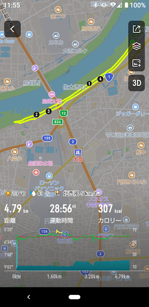 ・足も呼吸も楽だったが、心拍がいつもより乱高下。たぶん仕事疲れのせい。8㎞ぐらい走るつもりだったが早めの切り上げ。明日のロング走に備える。